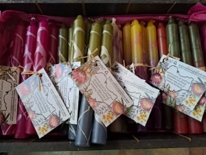 Dinner candles, variety of colours. Priced from $4.50 to $4.95.  These products are AHT end of stock line. Available from VEND, Virginia, North Brisbane.